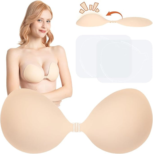 Lazyrosy Sticky Adhesive Push up Bra Beige